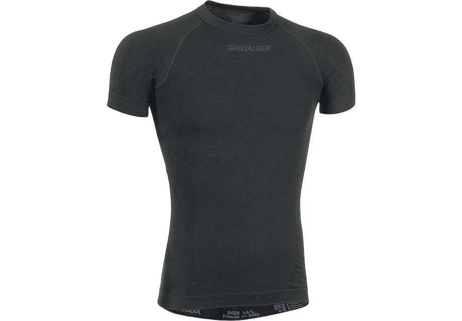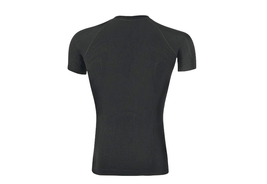 Maglia dalla vestibilitĂ aderente, realizzata in materiale che veicola l’umiditĂ verso l’esterno.